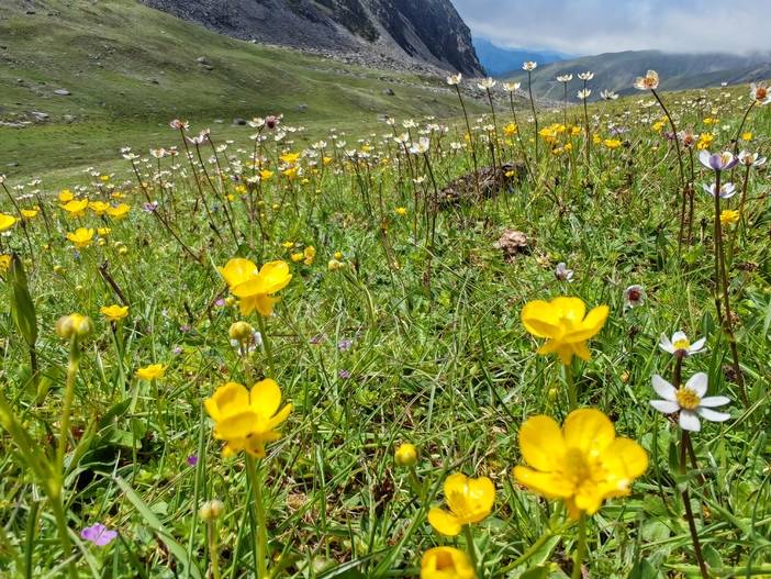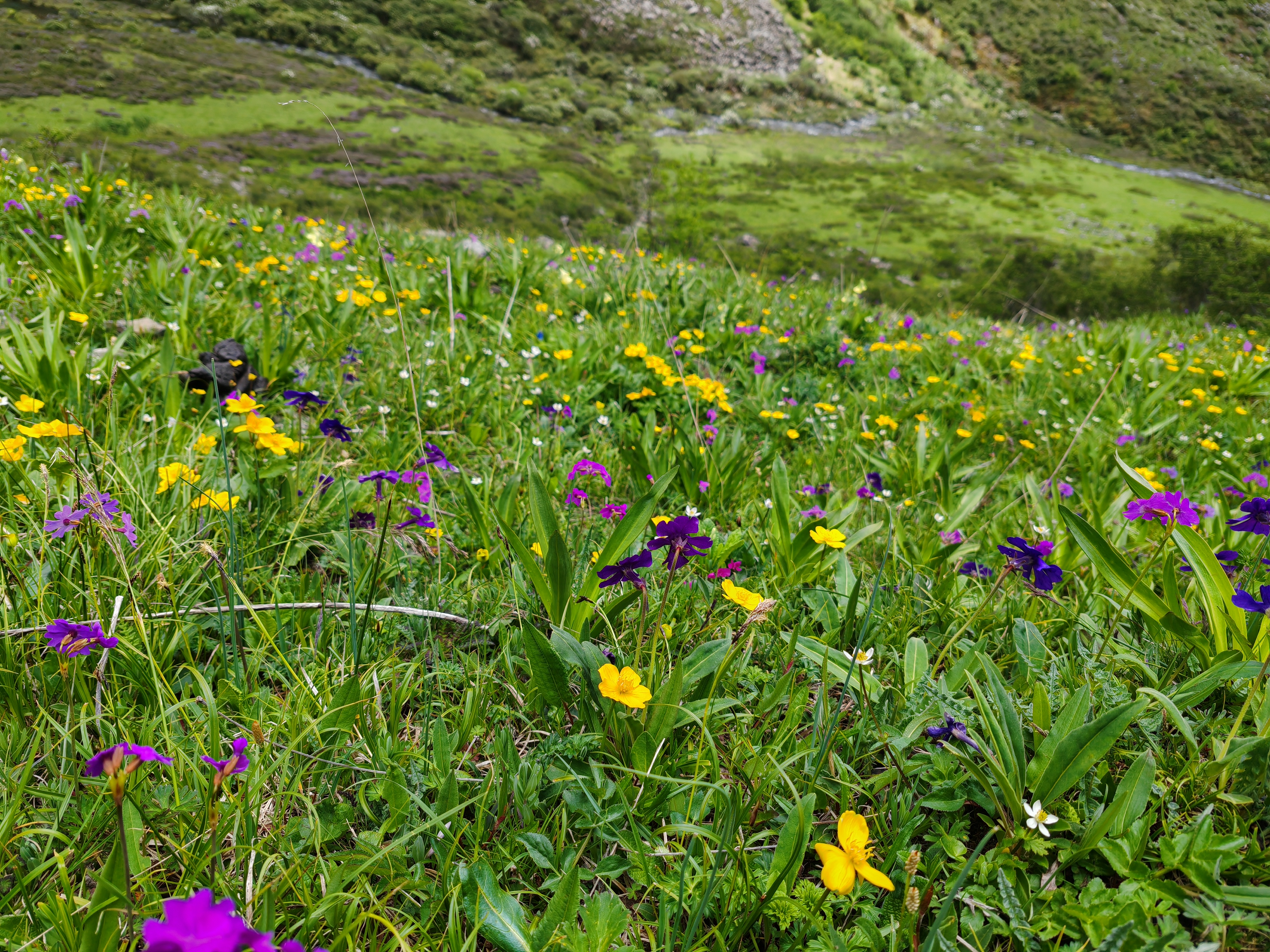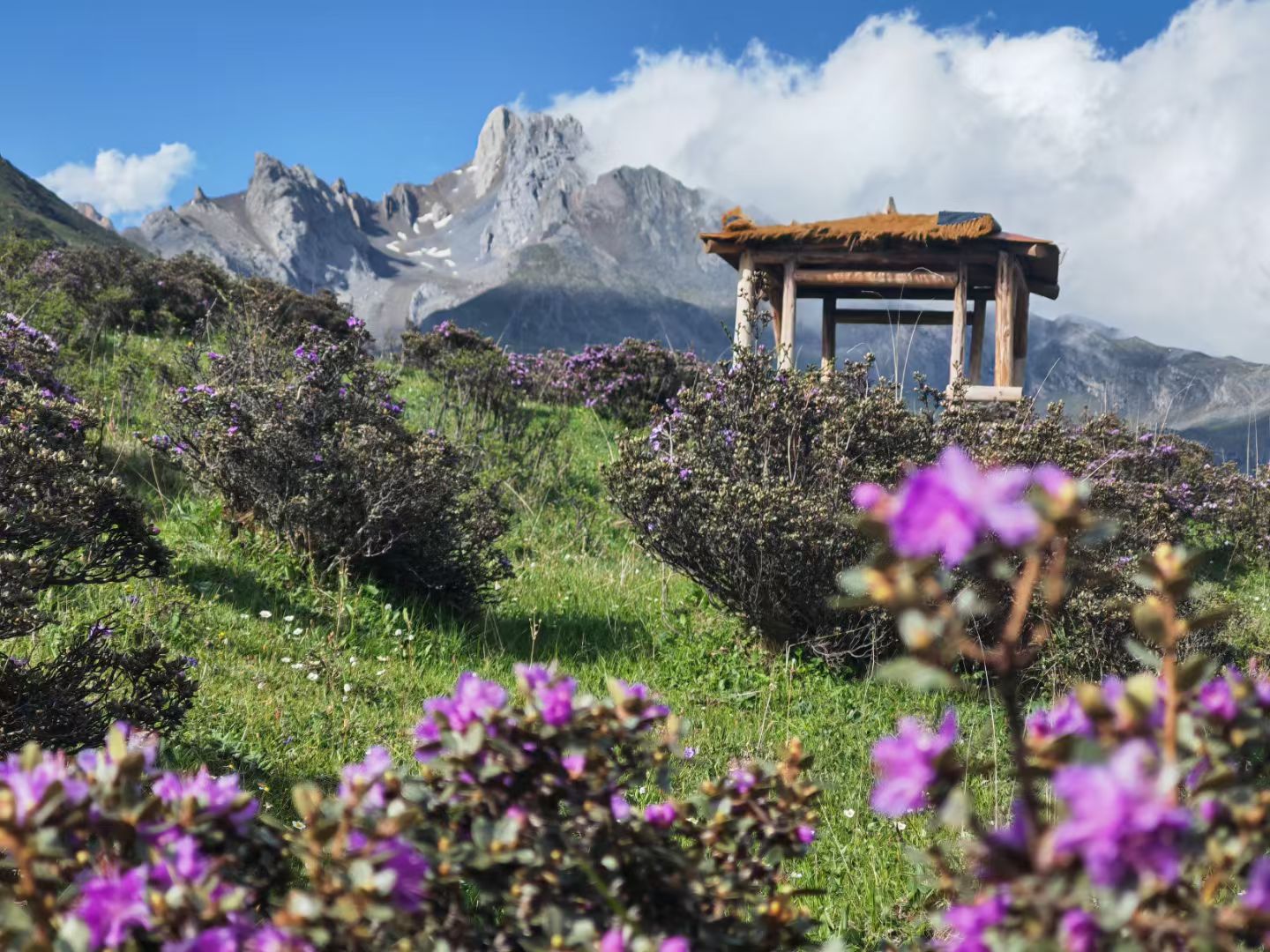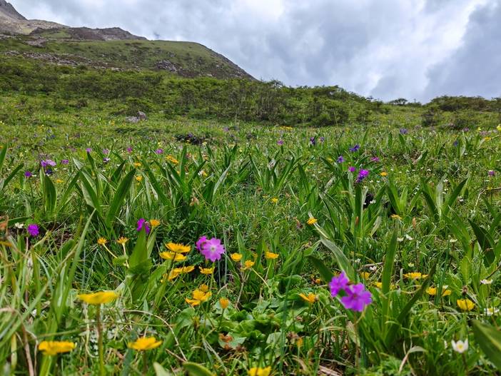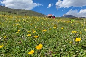 秘境花海,高山海子,可座中转车直接到海子,强度不大,只要不高返都可以去,这里没有人群的喧闹,只有花海,海子和远处的雪山相伴。
