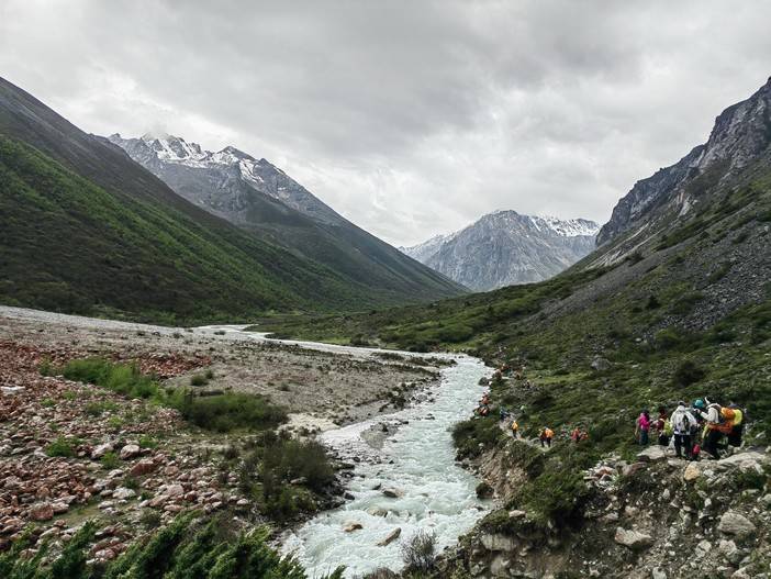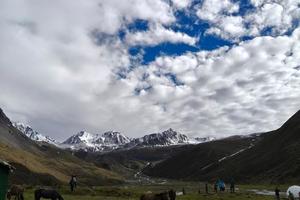 勒多曼因山峰海拔6112米,与贡嘎主峰遥遥相望,位于贡嘎山脉北部,其山峰巍峨险峻、庄丽秀美,勒多曼因山峰终年积雪不化,形成了一条长长的冰川和冰舌,下面有一个高山湖泊叫“冰湖”,我们就是去感受冰湖之美,一亲贡嘎芳泽。